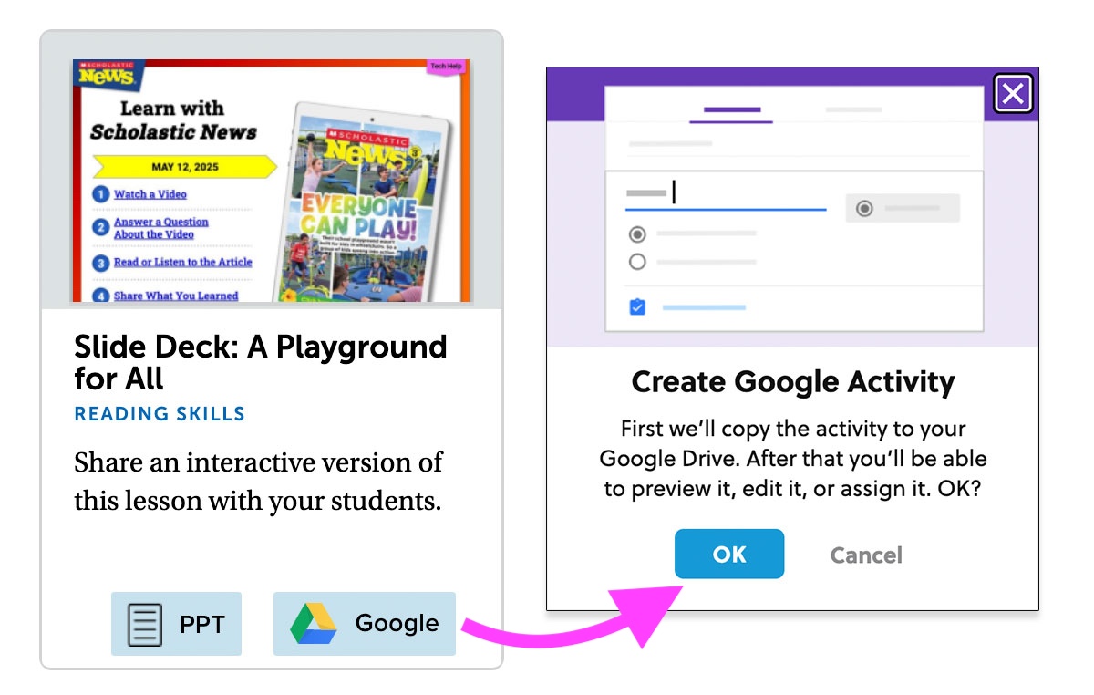 Every Scholastic News cover story now includes an interactive Learning Journey Slide Deck. These guided-learning activities are easy to customize, assign, and assess. Watch this short video to learn more.